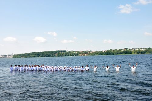 Потім головні учасники цього свята зайшли у воду, де давали обіцянку служити Богові із чистою совістю до кінця свого життя. Після водного хрещення у церкві відбувся спомин смерті Христової до якого долучились наші нові члени Церкви.